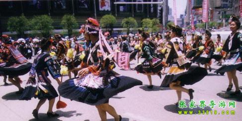 亞宜帶領(lǐng)眾人迎敵,戰(zhàn)斗了三天三夜,終因寡不敵眾向西撤退,得到貴州苗族支持,同官家周旋了一年。第二年四月八亞宜和貴州英雄亞努等人戰(zhàn)死在貴陽城。從那時(shí)起,“四月八”就成了青年男女聯(lián)歡節(jié)和祭祀英雄的紀(jì)念日。盡管歷代統(tǒng)治階級都以各種借口加以禁止,而具有反抗精神的苗族人民,只是改變了跳花的形式,仍然保留著聚會對歌內(nèi)容。一年一次,世代相傳,知道民國時(shí)期各地才先后中斷。后于一九八一年國家民委批示統(tǒng)一在京的苗族過“四月八”而才得到恢復(fù)。一九八六年在鳳凰上下落朝井鄉(xiāng)龍?zhí)梁哟澹?ldquo;四月八”的發(fā)源地舉行隆重聚會。這一天啟明星才掛在樹尖尖上的時(shí)候,湘黔邊境各地的男女青年,身著節(jié)日的盛裝,踏著路邊毛草上的露珠,唱著歌,吹著木葉,嘻嘻哈哈,迎著燦爛的朝露,從各條彎彎的山道上,向“跳花溝”涌來。十嶺八坡,山溝里外,龍河兩岸都站滿了人,熙熙攘攘,熱鬧非凡。會場的正中掛有寬六尺長七尺的淺紅大旗,繡有“四月八”三個(gè)大字,兩邊龍鳳圖案,莊嚴(yán)古樸,表示歷史悠久和不忘祖先功德。