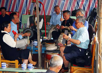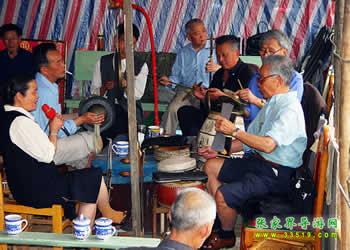 圍鼓(含嗩吶)。又稱打鎦子、打排鼓,是民間紅白會中不可缺少的樂器。一般7人演奏,樂器有一鼓、一大鑼、一公鑼、兩副鈸、兩嗩吶。其詞曲紅白會通用,以鼓和嗩吶上系紅、白布為分別標(biāo)記(結(jié)婚不打“四字鈸”曲)。史傳的圍鼓詞有《撩子》、《火鋪》等,《撩子》分《一二三》、《閃翅》、《堆羅漢》、《反落花》等十章,《火鋪》也分《三槍》、《四進(jìn)門》、《八哥洗澡》、《蓮魚吐絲》等十章,嗩吶詞有《八十正宮》調(diào)等。在農(nóng)村,圍鼓是最普及的樂器,每逢紅白喜事都有圍鼓和嗩吶表演。
