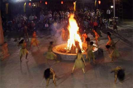 如遇天干蟲(chóng)荒,便打醮求神,邊舞龍燈邊潑水,祈求龍王爺降雨。舊社會(huì)許多村寨都建土地廟,五谷廟,人們經(jīng)常來(lái)這些小廟里燒香敬神,祈求最神明保佑人畜平安,五谷豐登。 土家族平常也有忌諱,但是多的忌諱就是在春節(jié)前后這一段。比如,古歷臘月二十四日過(guò)小年以后,不準(zhǔn)在房前屋后挖土,認(rèn)為這時(shí)動(dòng)土不吉利。到了三十晚上這一天,又亂挖亂好,于是家家戶(hù)戶(hù)起陽(yáng)溝,打掃衛(wèi)生,搞得干干凈凈好過(guò)年。 二十四日還要敬灶神。吃團(tuán)年飯時(shí)先要敬祖宗,擺肉擺酒,燒香紙,磕頭作揖。團(tuán)年飯除暈菜外,還要配青菜與白菜,吃青菜,取它的諧音“清泰平安”,吃白菜同樣是取它的諧音“百事順利”等等。吃年飯時(shí)半夜起床辦飯,天不亮就開(kāi)始吃,說(shuō)是頭吃頭亮。吃飯不能泡湯,否則會(huì)垮田 勘 。過(guò)年只能講吉利話,不能說(shuō)病、死等一些不吉利的字眼。 大年初一,家家貼上對(duì)聯(lián):“出門(mén)大吉,對(duì)吾生財(cái)”。還有“初一不出門(mén),初二拜丈人”的規(guī)矩。如出遠(yuǎn)門(mén),還要請(qǐng)人看日子,說(shuō)是“七不出門(mén)八不歸,初九出門(mén)空手回。”出門(mén)時(shí)看見(jiàn)喜鵲是好事,看見(jiàn)烏鴉不吉利。挑擔(dān)子的扁擔(dān)婦女不能從上面過(guò),否則也會(huì)認(rèn)為背時(shí),洗澡分大小腳盆,男人洗大的,婦女只能洗小的。婦女懷孕以后,家里東西不能隨便搬動(dòng),房前屋后不能隨便動(dòng)土,墻上和板壁上不能釘釘子,也不能用刀剁門(mén)坎,等等,說(shuō)是違反了這些規(guī)矩會(huì)造成孕婦流產(chǎn)。 如家里人在外面兇死(如被殺、摔死、打死等)的尸體不能抬進(jìn)屋,因“紅頭老千”進(jìn)屋,子孫會(huì)兇多吉少。而且也不能同病死、老死的人埋在一起,應(yīng)單獨(dú)安葬。以上一些信仰與忌諱隨著科學(xué)文化知識(shí)的提高,現(xiàn)在已越來(lái)越少了。