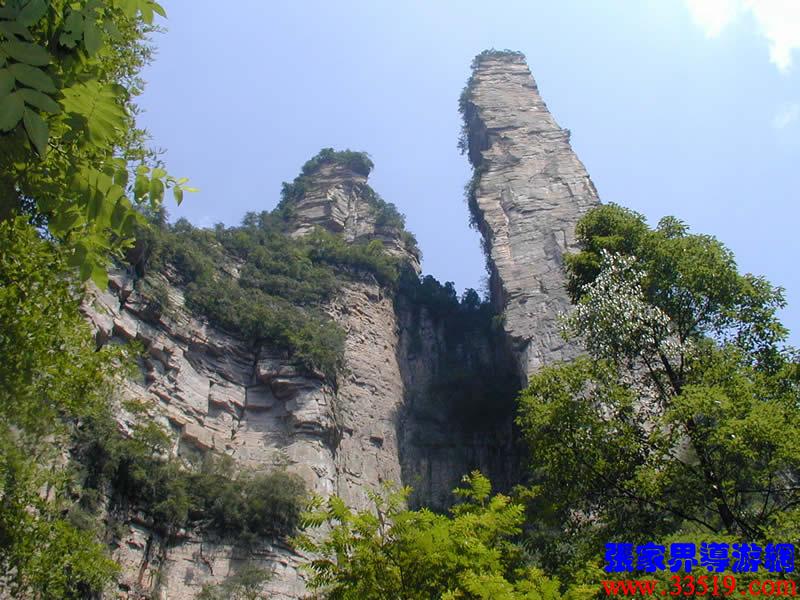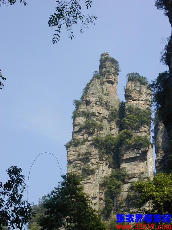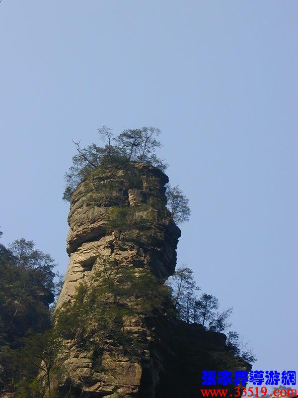 (花果山、水簾洞)孫悟空的花果山水簾洞到了。并不是張家界人過(guò)于牽強(qiáng),胡亂把西游記的事兒往這兒湊,實(shí)在是巧合,《西游記》劇組的導(dǎo)游楊潔及唐僧、豬八戒、孫猴子、沙和尚等飾演者,一見(jiàn)到這地方就十分肯定地說(shuō):外景地選遍全國(guó),只有張家界才真正是《西游記》筆下的神仙妖魔世界。大家順著我的指向往前看,左前方是帶著僧帽,披著袈裟,嘴中念念有詞的唐僧,緊跟在他后面的那座黑乎乎的石峰當(dāng)然就是沙和尚了;神通廣大的孫猴子半蹲在唐僧后側(cè)手搭涼篷,正在觀察敵情呢;豬八戒哪去了?不用說(shuō),不是貪吃貪睡,就是偷偷找小女子搭訕去了,花心去了。