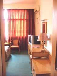 酒店簡(jiǎn)介:賓館擁有豪華標(biāo)準(zhǔn)間間,普通標(biāo)間、彩電、空調(diào)、高檔地毯、電話、整體淋浴房等,二十四小時(shí)供應(yīng)熱水,餐廳、宴會(huì)廳能容納180人同時(shí)就餐,卡拉宋、美容美發(fā)、桑拿按摩、旅游車隊(duì)、商務(wù)部、票務(wù)中心等配套服務(wù)設(shè)施一應(yīng)俱全,是住宿、餐飲、旅游度假、休閑娛樂的理想場(chǎng)所。
