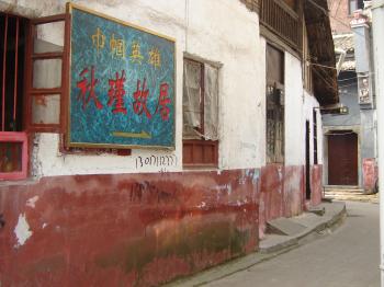 秋瑾故居位于湘潭市十八總由義巷。這位近代史上杰出的巾國(guó)英雄、婦女解放運(yùn)動(dòng)的先驅(qū),在這里度過(guò)了8個(gè)春秋。離大碼頭不遠(yuǎn)處有一條寬敞的小巷叫由義巷,巷兩旁墻高院深,大多是官紳富商之家,也開(kāi)設(shè)了幾家當(dāng)鋪、錢莊。進(jìn)巷口十多丈遠(yuǎn)處,有一棟青磚青瓦麻石門樓的鋪面,大門上首有一塊漢白玉石刻招牌“義源當(dāng)”,這是湘潭有名的義源當(dāng)鋪。