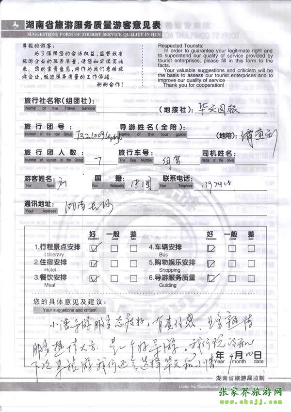 - 游客夏先生為表揚導游李姣姣寫來表揚信致我張家界... [14811]