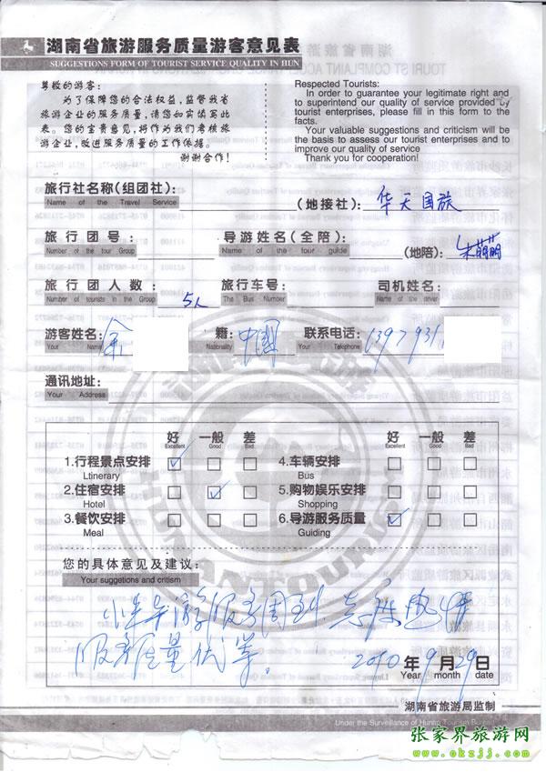 - 游客夏先生為表?yè)P(yáng)導(dǎo)游李姣姣寫來(lái)表?yè)P(yáng)信致我張家界... [14811]