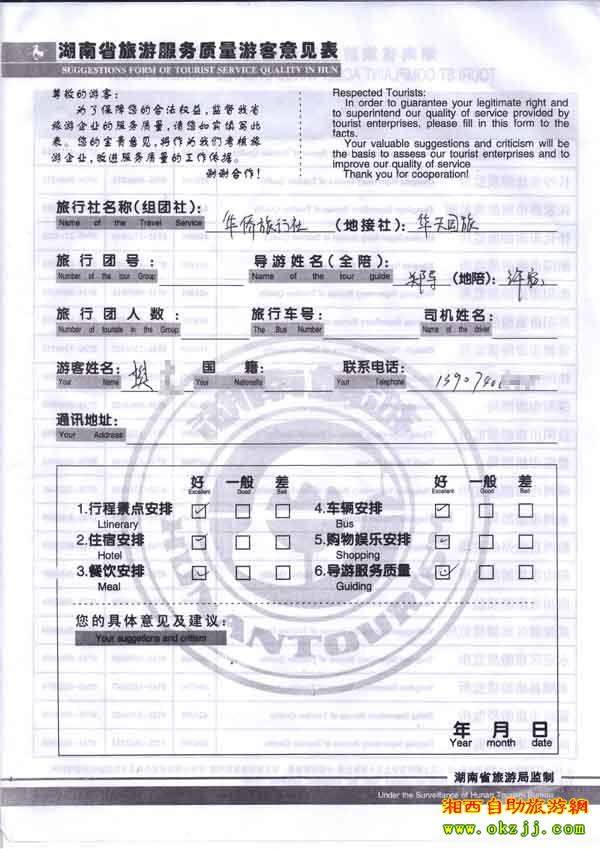 2010年5月11日岳陽(yáng)樊小姐旅游質(zhì)量反饋