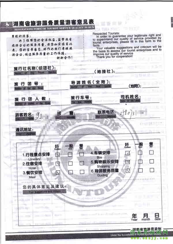 - 2011年10月26日張小姐一行18人旅游質(zhì)量反饋 [10482]