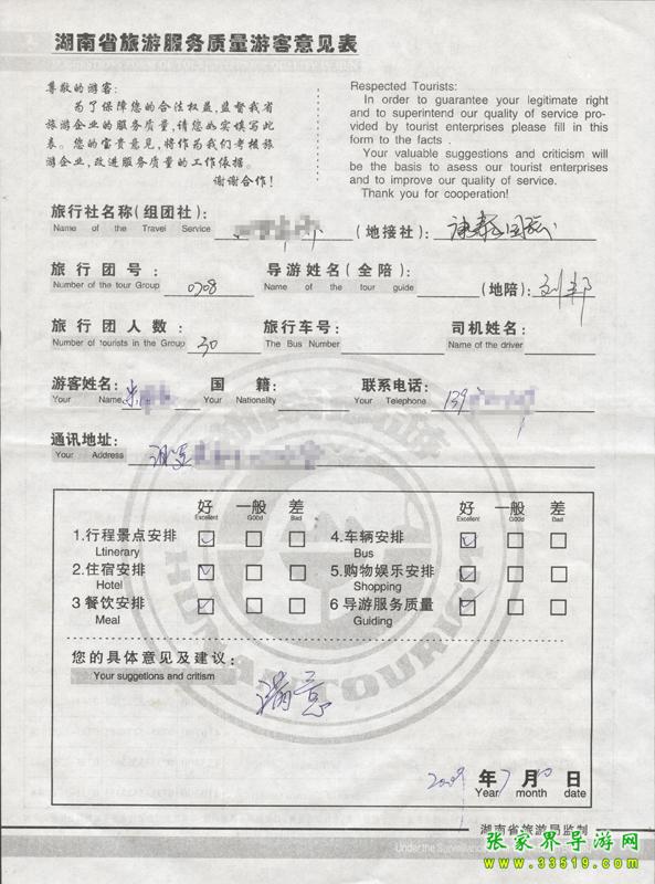 - 游客夏先生為表揚導游李姣姣寫來表揚信致我張家界... [14811]