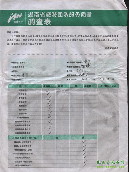 2011年10月4日張先生一行3人旅游質量反饋