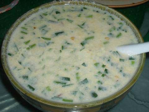 將用水浸泡過的黃豆用磨子磨碎,摻入切細(xì)的青菜葉,然后用溫火煮熟即可。此樣菜雖做法簡單,但營養(yǎng)價值極高且味鮮美,為當(dāng)?shù)厝顺S玫囊坏啦恕?/p> ■土家糍粑