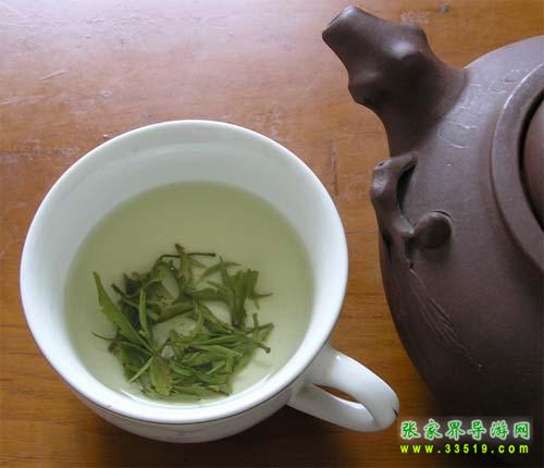 武陵源風景區(qū)盛產香茶,著名的有“青巖茗翠”、“龍蝦花茶”、“黃石寨云霧茶”、“天崇毛尖”與“索溪毛尖”等。通過1982年評比,“青巖茗翠”獲部級金杯獎,同年又獲全國首屆食品博覽會銀獎。“龍蝦花茶”也已列入全國名茶。人們經過品嘗、評比,并經茶葉專家鑒定,一致認為“青巖茗翠”、“龍蝦花茶”等具有外形美觀,內質優(yōu)良等特點。這種茶葉,從外形來看,條索緊結,圓渾彎曲,苗鋒顯露,銀毫滿披,色澤翠綠,從內質來看,清香馥郁,味醇回甘,湯色綠明,葉底均勻,飲后爽神,具有熟板栗蘭花之奇香,飲后回味無窮。據考證,“青巖茗翠”屬高山云霧茶一類。自古道:“高山出好水,云霧育佳茶”。黃石寨枇杷界海拔1000多米,氣候溫和,云霧繚繞,溫度適宜,因而,茶葉嫩度高,品質好。這種獨特的環(huán)境為茶葉中的氨基酸,咖啡堿等有效成分的形成和增長,提供了優(yōu)越的生長條件,而對質地粗老的纖維素的形成,則又起到了抑制作用。還有,這些山峰上日照短,直射光少,漫射光多,晝夜溫差大,土質的有機質豐富,因而結構疏松,排水又好。一切這些因素,都為茶葉的平穩(wěn)生長創(chuàng)造了良好的條件。所以“青巖茗翠”茶,就博得了各地名家的一致好評。湖南省茶葉學會秘書長、湖南農學院副教授朱先明品了這種茶以后,賦詩贊美: