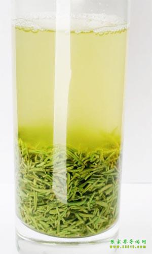 張家界還有一種名茶,即初登茶壇的“龍蝦花茶”。這種茶,顧名思義,是以風景明珠張家界盛產的獨特名貴花卉龍蝦花為特征,精心制作的一種黃綠茶。這種茶的主要特色有三:一是形狀如蝦;二是顏色杏黃;三是內質好;從外形來看,條壯頭大身肥,尾巴稍彎曲,狀如龍蝦花。從內質上品學,香氣清悅,湯色杏黃而明澈,滋味甘爽回甜,葉底黃亮,頰齒留香。故游人飲得其湯,如見其狀,如臨其境,終身難忘……