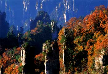 森林覆蓋率達(dá)97.7%的張家界,無愧于中國第一個國家森林公園的稱號。其植物種類比整個歐洲擁有的樹木種類多一倍以上。珍貴樹種包括屬國家一級保護(hù)的珙桐(外國人又叫“中國的鴿子花”)和屬國家二級、三級保護(hù)的鐘萼木、銀杏、香果樹以及鵝掌楸、香葉楠、杜仲、金錢柳、貓兒屎(第三紀(jì)殘遺樹種)、銀鵲、南方紅豆杉等,是個實(shí)實(shí)在在的森林寶庫。 冬天走在這樣的森林寶庫里,滿眼的綠帶給你的卻是春天般的溫暖。精靈奇巧的霧凇千姿百態(tài),笨拙憨厚的灌木清純天成……踏著片片落葉,遙望遠(yuǎn)峰勁綠,深呼吸一口初冬微涼的空氣,春、秋、冬三季在這一刻蒙太奇般地拼在了一起,夢幻般的感覺縈繞不去。 好山好水不冬眠
